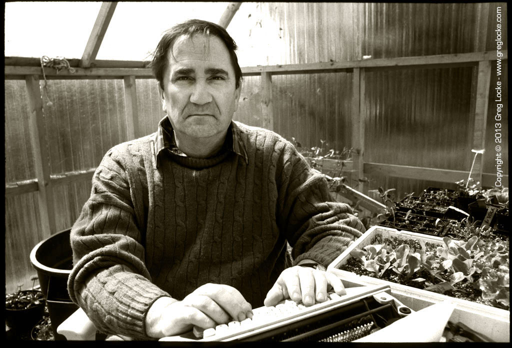 While I had read many of his books and stories throughout school and early career I first met Ray in 1993 when Macleans magazine sent to photograph him for a story he was writing for them. I don’t remember the story exactly but something about Newfoundland and confederation. After the usual shots around the house I knew it wasn’t working. Contrary to his public image, he was a shy and self-deprecating man and putting him in front of a camera didn’t help matters. I did know he loved his garden so suggested going outside to the greenhouse. We talked and made pictures for a bit and when we were done and I was packing up my gear when he said, “You know what I think about how Newfoundland has been treated by Canada?” Perhaps sensing I needed something more dramatic, he reached down and picked up a dried maple leaf, shot me an impish smile and tore the leaf in half. I pushed the button.