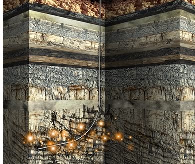 Other companies now offer fracking services, among them global oil field giant Schlumberger. Directional drilling, in wide use since the 1980s, enables engineers to turn a well bore ninety degrees and extend it for kilometres through horizontal shale, exposing much more of it to fracking. But the essence of the task remains unchanged: use a hydraulic hammer to shatter stone. The hammer, however, has bulked up by orders of magnitude. The first commercial fracks used the equivalent of a seventy-five-horsepower outboard motor to force 180 kilograms of sand, slurried in 2,800 litres of frack fluid, down a well—once, or at most twice. Modern fracking can take the power of several diesel locomotives to drive anywhere from 220,000 to 3.7 million litres of water and fracking fluid underground, each time forcing up to 2.2 million kilograms of sand or another “proppant” (a material to keep the resulting fractures open afterward) into the fissures. Now, instead of just one or two fracks, most wells undergo a dozen or more over a period of months; some take up to fifty individual fracks.